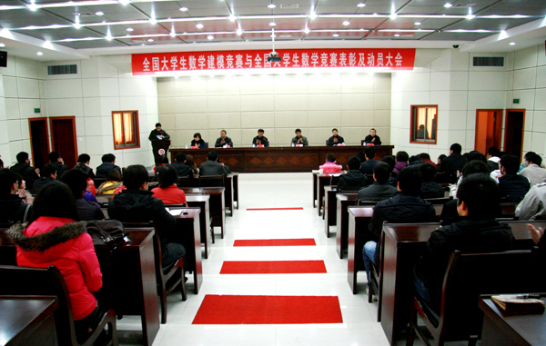 副院长张群发表了热情洋溢的讲话。他指出,长期以来,永利官网高度重视数学建模大赛和数学竞赛,突出实践特色,将数学建模和数学竞赛与学科专业建设结合起来,重在发挥团队优势,整合优质师资,做强做优数学建模和数学竞赛品牌,尤其是数学与计算科学学院在其中起到了生力军的重要作用。由于领导重视、机制健全,措施有力,形成了独有的举措、特色和优势,成为了闪亮的“名片”。张群副院长用“准”“实”“好”这三个关键词全面总结了数学建模大赛和数学竞赛工作。即在机制建设上突出了“准”;在培训提高上突出了“实”;在参赛实效上做到了“好”。张群副院长指出,2010年更是一个丰收之年。永利官网派出的16个数学建模代表队,获得了2个一等奖,5个二等奖,7个三等奖的好成绩。获奖面达87.5%,获奖面继续在全省高校中名列前茅,并取得了获得一等奖的数量新的突破。永利官网的数学竞赛同样成绩不俗,在数学专业组比赛中,数学与计算科学学院1人荣获一等奖,2人荣获二等奖、1人获得三等奖;在非数学专业组比赛中,永利官网2人获二等奖、3人获得三等奖。学院组数学专业全省共有18人获奖,永利官网有4人摘得;4个一等奖,永利官网占有1席,成绩取得了新突破。学院组非数学专业的比赛,永利官网选手同样表现不俗,有5人获得奖项,创下了历史最好成绩。