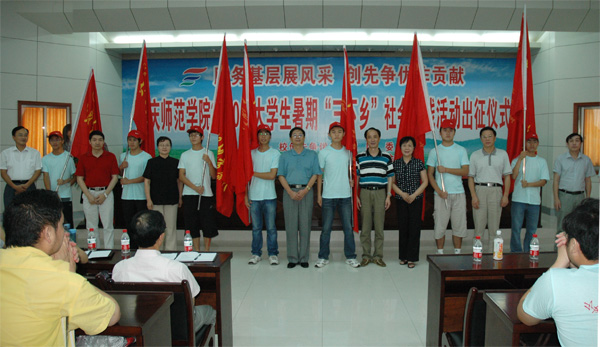 服务基层展现当代大学生的青春风采,创先争优为人民群众做贡献,志愿者们要联系工作实际,紧紧围绕党的中心工作,充分发挥党员的积极性和主动性,将创先争优做得扎实有效。时新中副院长在出征仪式上说道:“服务是‘三下乡’实践活动的根本目的,同学们要借‘三下乡’实践活动的有利时机,开展科技立项和社会调查活动,实现‘服务群众、锻炼自我’的双重目标,这样才能在活动中学得知识、受到教育、增长才干。”