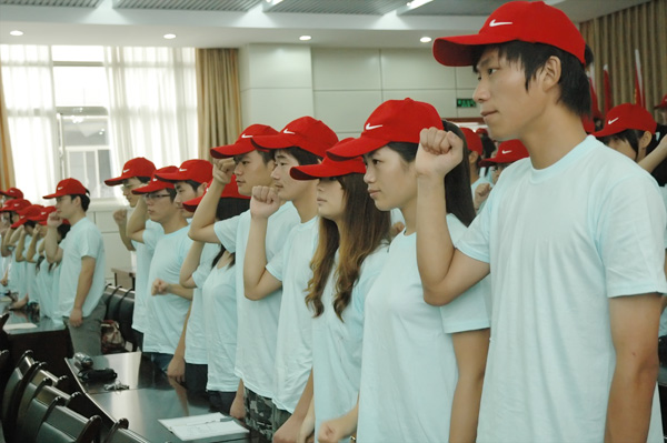 他们充满了青春的活力、充满了对生活的热爱和激情,这份活力和激情是他们完善社会实践、丰富青春的最好保障。“我宣誓:我愿意成为一名光荣的志愿者,尽己所能,不计报酬,帮助他人,回报社会……”最后,即将出征的志愿者们握起拳头庄严宣誓,洪亮的声音在整个会场回荡。