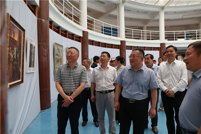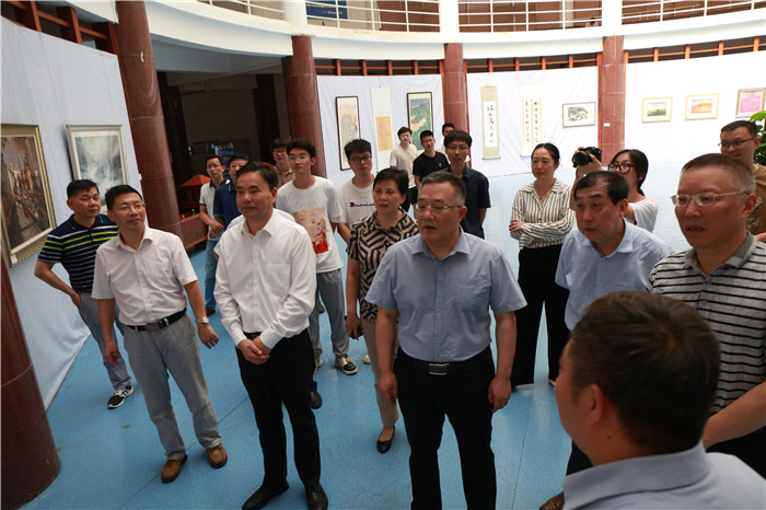 百年辉煌历程,百年丰功伟绩。为庆祝中国共产党成立一百周年,弘扬和继承中国共产党的优良传统,营造良好的红色学习氛围,629日,庆祝中国共产党成立100周年美术设计作品展开展。党委书记许继荣,党委副书记、校长闵永新,党委副书记吴照明,党委常委、副校长汪时珍、刘友忠,党委常委、纪委书记胡腊香,党委常委、副校长吴琼,党委常委、组织部宣传部部长余精华等校党政领导和广大师生一起观看了画展。