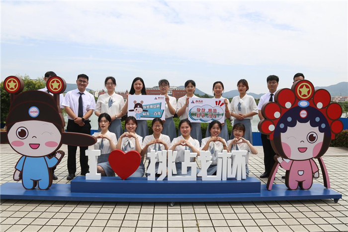 比赛期间,敬敷广场上的卡通吉祥物“安安”“青青”吸引了来往学生和专家评委的目光,卡通人物造型灵感来源于安庆地方特色戏曲黄梅戏。三个月前,学校便开始着手设计卡通吉祥物,一同准备的还有各类横幅、指路牌、展板、伴手礼等,这些丰富多彩、极具特色的文创产品让赛场氛围感满满,成为比赛期间的一大特色。