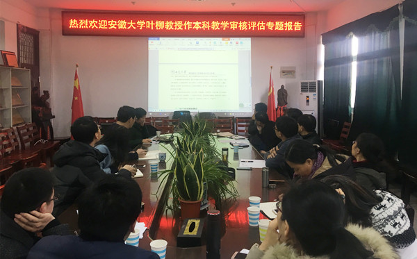 12月1日下午,物理与电气工程学院召开了本科教学审核评估培训会。学院邀请了安徽大学物理与材料科学学院副院长叶柳教授作本科教学审核评估专题报告,学院党政领导、各办公室负责人、各专业负责人和全体教研室主任参加了会议。
