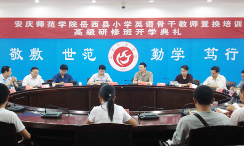 9月12日下午,永利官网在龙山校区行政楼二楼会议室隆重举行岳西县小学英语骨干教师置换培训高级研修班开学典礼。安庆师范学院副院长张群,安庆市教育局副局长林华亮、人事科科长于琪峰,安庆师训中心主任李和平,岳西县教育局局长方国安、副局长程学东等出席了开学典礼。负责本次研修工作的教务处和外国语学院主要负责人、教师代表以及28名研修班学员参加了本次典礼。典礼由教务处处长程曦主持。