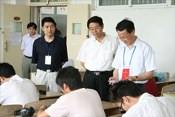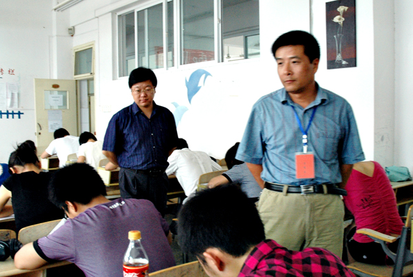 考试当天,安徽省教育厅王伟同志在教务处、外国语学院负责同志的陪同下,巡查了考试情况。