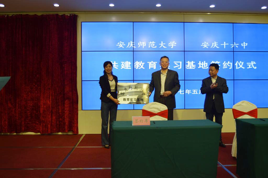 签约仪式上,安庆一中、安庆二中、安庆石化一中、安庆七中、安庆十中、安庆九中、安庆四中、安庆十一中、安庆广圩中学、安庆十四中、安庆十六中、安庆绿地实验学校、安庆开发区实验学校、安庆白泽湖中学、安庆大龙山初中、安庆健康路小学、安庆石化三小、安庆十里中心学校、太湖朴初中学、潜山双峰初中、潜山三环高中、枞阳花园初中依次与永利官网签订共建77779193永利教育实习基地协议,并从校长闵永新手中接过教育实习基地牌匾。