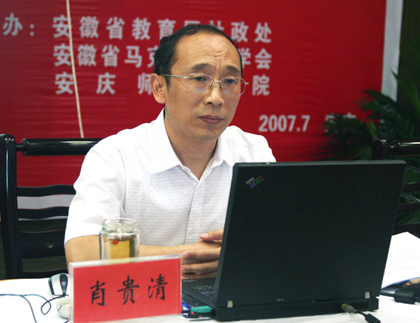 安徽省马克思主义学会会长、安徽省“概论”课建设协作组组长、安庆师范学院党委副书记、院长汪青松教授在会上作重要讲话。汪院长从把握“毛泽东思想、邓小平理论和‘三个代表’重要思想概论”课与时俱进的理论品格、公共课教育与专业课教育相结合、形成激情互动型的课堂教学模式、倡导以实践为主导的教学模式等几个方面就如何建设“毛泽东思想、邓小平理论和‘三个代表’重要思想概论”课提出了指导性意见。汪院长指出,建设好“毛泽东思想、邓小平理论和‘三个代表’重要思想概论”课具有重大意义,相信在省委教育工委的指导下,我省的概论课建设会迈上一个新的台阶。