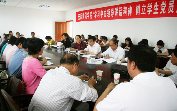 为进一步推进学生党员学习实践科学发展观活动的开展, 5月19日下午,永利官网学习实践科学发展观活动办公室、学生处、团委隆重召开“学习中央领导讲话精神 树立学生党员良好形象”座谈会。时新中副院长出席座谈会,学习实践活动办公室、学生处、团委负责人、各院系分管学生工作领导、各院系辅导员代表和学生党员代表70余人参加了座谈会。座谈会由党校常务副校长、组织部副部长王先民主持。