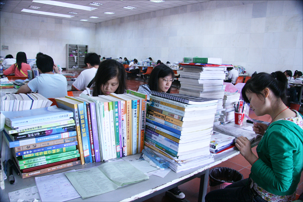 在教学楼的706教室,学习累了,或者心里烦闷的时候,他们会停下来,一起讨论相同的课目,“有时甚至是争论呢,但是帮助很大,有时一些难的问题,通过讨论,会有一种豁然开朗的感觉”。徐传芳这么认为。在108,休息的时候,大家相互之间也会经常考一些政治上的小知识点。在赵欣看来,“这是换一种方式学习”,“有时自己看到了,但同学不一定看到了”。考前头一天晚上,很多同学照样去了108,在一起聊聊天,放松一下紧张的情绪。但他们的方式依然与学习有关,一个个学生轮流到讲台上出题,让底下的同学抢答。中间有人出了一个问题,“第一个把马克思主义介绍到中国的是谁”,“第二天的政治考试就考到了这道题呢!”在这样的学习环境中,他们总是互相帮助,复习资料也都相互传阅。赵欣看的数学资料,就是和三个同学在一起买的,一人买了一套,然后大家合在一起交换着做。“考研,我们的希望并不只是自己能考上,而是我们大家都能考上,都能达成我们的理想”。吴刚认为,“我们考虑的不仅仅是个人,更是集体”。