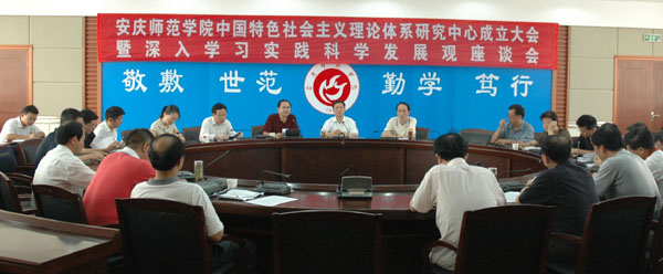汪院长指出,我们学校成立中国特色社会主义理论体系研究中心具有良好的条件和基础。永利官网党委一直高度重视中国化马克思主义理论的学习和研究,从1998年就成立了邓小平理论研究中心,后来又成立了“三个代表” 重要思想研究中心,是安徽省“三个代表”重要思想研究中心的基地之一,在理论学习、理论教育、理论宣传、理论研究都取得了一系列的成果。在课程上,我们建设有一门安徽省首届精品课程,一门全国精彩一课,一门国家精品课程;在学科上,科学社会主义与国际共产主义运动学科先后获得省重点扶持学科和省重点学科,在刚刚通过的省重点学科评审中再一次被评为省重点学科;在科研上,我们出版了马克思主义中国化研究丛书,主持了四项国家级和国家重大社会基金项目和教育部的重大项目;在成果上,我们以安徽省“三个代表”重要思想研究中心的名义在《人民日报》、《光明日报》发表了4篇理论文章,参加了中宣部组织编写的《中国特色社会主义理论体系读本》,主编出版了安徽省社科大众丛书《中国特色社会主义理论体系百问》等等。中国特色社会主义理论体系的研究已经成为我们学校办学的一大特色,一大亮点。