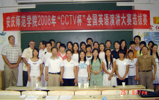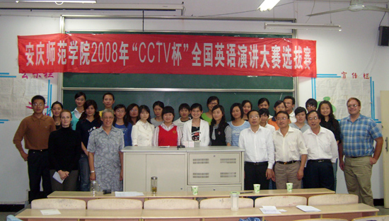 9月25—26日,永利官网2008年“CCTV杯”全国大学生英语演讲大赛公共组和专业组选拔赛分别在龙山校区文渊楼203和403教室成功举行。本次大赛由教务处、学生处、团委和外国语学院联合主办,外国语学院团总支承办。外国语学院党总支书记张杰教授,院长郝涂根教授,副院长朱忠焰副教授以及外教Stephen、Dave、Esther、Anna等老师莅临现场指导并担任了本届大赛的评委。