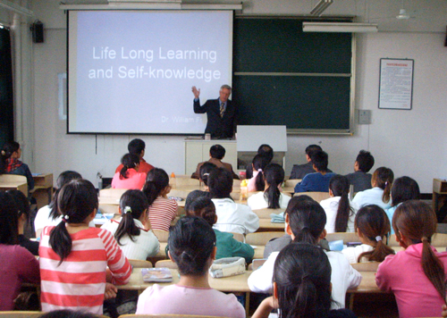 4月16日下午,应外国语学院的邀请,美国奥古斯堡学院原校长William Frame 博士在永利官网龙山校区教学楼B205多媒体教室为外国语学院师生作了一场题为Life Long Learning and Self-knowledge的主题演讲。外国语学院党政领导、部分教师和学生代表共120余人聆听了报告。