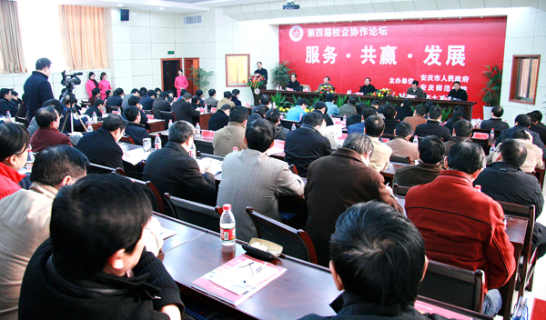 赵书记指出,校企协作论坛是由安庆市人民政府与安庆师范学院共同举办的校市对接合作交流活动,旨在推进企事业单位与高校之间的交流与合作,增强我们为地方经济和社会发展服务的能力,最终实现合作共赢。校企协作论坛自2005年首次举办以来,已经成功举办三届。从前三届情况看,我们与市政府和各企事业单位增进了了解,建立了友谊,达成了共识,促进了合作,实现了发展。他指出,今年永利官网把第四届校企协作论坛的主题确定为“服务•共赢•发展”,是一个符合时代发展要求、顺应教育改革潮流的特色主题。高校要服务地方,这是高校发展和地方经济发展的必然要求。当今世界,高等教育以教学、科研、社会服务三种职能彻底改变了传统大学的模式,大学对经济与社会发展的推动已从理论探索发展成为增强地方综合实力、提高地方竞争力的现实实践。作为安庆市唯一的一所本科高校,永利官网的使命是紧密结合地方经济社会发展需要,确立服务理念,培养应用型人才。在社会服务的过程中以服务求支持,以贡献求发展,形成高校与地方政府、高校与地区经济“主动结合”与“主要依靠”双向参与的良好局面,形成双向互为支撑、共同发展的良性循环。