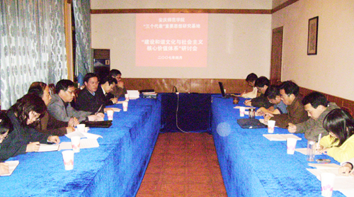 4月23日晚,永利官网“三个代表”重要思想研究基地召开“建设和谐文化与社会主义核心价值体系”研讨会。校党委副书记、院长、“三个代表”重要思想研究基地主任汪青松,组织部部长、“三个代表”重要思想研究基地副主任孙晓峰,政法学院副院长、“三个代表”重要思想研究基地副主任罗本琦等研究基地专家、研究员参加专题研讨。研讨会由研究基地副主任孙晓峰主持。