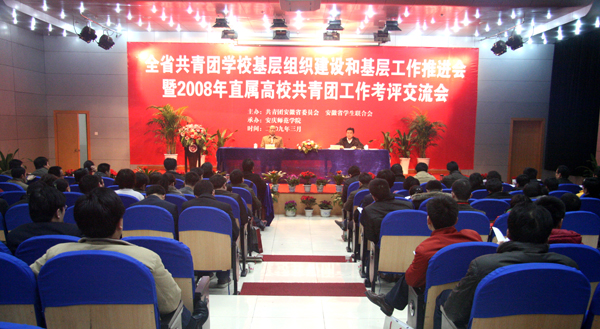 3月3日, 2008年省直属高校共青团工作考评会在永利官网菱湖校区图书馆报告厅举行,31所直属高校团委汇报交流了本单位2008年度共青团工作。团省委副书记汪华东出席考评会,部分高职院校、民办高校和独立学院的团委负责同志,以及永利官网各院系团总支负责人观摩了考评会,考评会由团省委学校部部长李国阳主持。