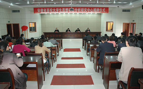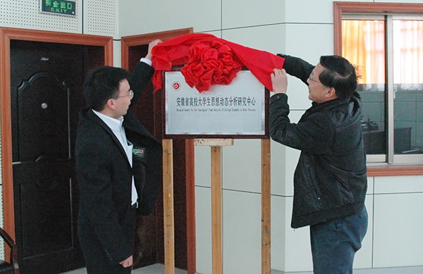 报告会前,闵永新副院长与王后林副处长共同为永利官网 “安徽省高校大学生思想动态分析研究中心”揭牌。