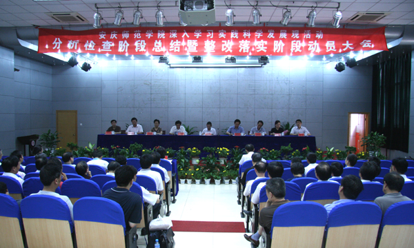 指导检查组组长、省委教育工委原副书记江孝鸿同志发表了重要讲话。他指出,在深入学习实践科学发展观活动的第二阶段,安庆师范学院切实抓住科学发展上水平这个核心,紧紧围绕人才培养这个根本任务,始终突出领导班子和领导干部这个重点,精心组织召开了领导班子专题民主生活会和党员专题组织生活会,形成了高质量的分析检查报告。分析检查报告体现了学校活动开展的成果,是校、院两级领导班子和广大师生员工智慧的结晶,也是指导学校今后一个时期发展的基础性软件和纲领性文件。在对分析检查报告的群众评议中,100%的群众表示满意和基本满意,其中,满意的占96.8%,基本满意的占3.2%。目前,安庆师范学院已顺利完成了分析检查阶段的各项任务,做好了整改落实阶段的充分准备,具备了转段的基本条件。省属高校第六知道检查组在与学校领导充分交换意见后,同意安庆师范学院于今天正式转入整改落实阶段。
