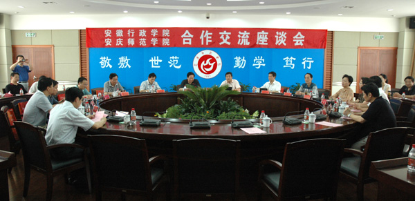 上午9时30分,永利官网在行政楼二楼圆桌会议室召开安庆师范学院与安徽行政学院合作交流座谈会,全体校领导以及办公室、宣传部、监察审计处、教务处、科技处、学生处、财务处、保卫处、团委等部门负责同志参加了会议。