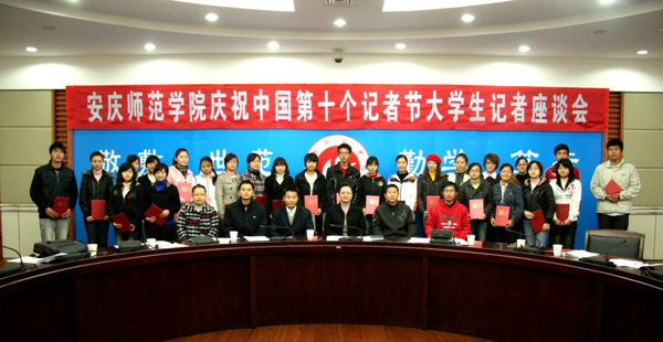 会上,校党委副书记、纪委书记殷红,党委宣传部、统战部部长朱守良,党委宣传部、统战部副部长孙永玉为“优秀新闻作品”获奖记者、优秀播音员、优秀编辑颁发了荣誉证书。校报编辑部主任陈东同志宣读了《关于表彰安庆师范学院2009年度“学生记者好新闻”、“优秀广播播音员”、“优秀广播编辑”的通报》。5名学生记者代表先后发言,畅谈了采访写作和播音工作心得和个人成长体会。