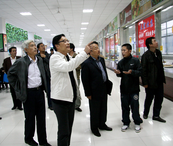 10月14日下午,检查组成员淮南师范学院副院长杨正清、合肥工业大学后勤集团总经理李峰、安徽农业大学总务处长张久辉、安徽建工学院曹春阳、皖南医学院总务处李长久等一行,一下车就来到学生食堂检查工作。在党委委员、副院长闵永新和后勤管理处、学生处、团委、后勤集团、安苑公司负责同志的陪同下,检查组仔细查看了永利官网学生食堂消毒柜、冷库、加工间、荤菜配切间等场所,详细询问了食品留样、采购、索证、储存、价格等方面情况,并随即向学生进行访谈。当晚,党委书记何小祥前往检查组住地亲切看望检查组全体成员。