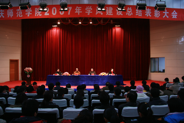 12月26日下午,永利官网在龙山校区图书馆东报告厅隆重召开2007年学风建设总结表彰大会,校党委书记赵晓和,党委委员、副院长时新中,党委委员、纪委书记殷红,党委委员、办公室主任刘友忠出席大会。有关职能部门负责人,各院系分管领导、团总支负责人、专职辅导员,各类优秀学生代表近500人参加了大会。大会由纪委书记殷红主持。