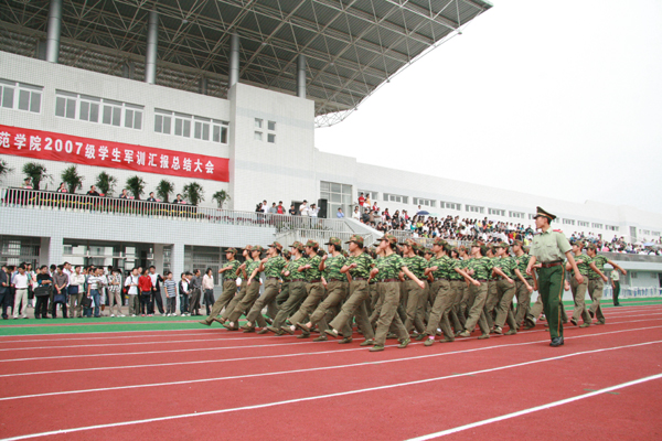 2007级军训汇报总结大会在激扬的乐曲中落下帷幕。07级新生将以军训中磨练出的坚强意志和进取精神在安庆师范学院开创自己辉煌的明天!(宣传部 陈东 钱敏)