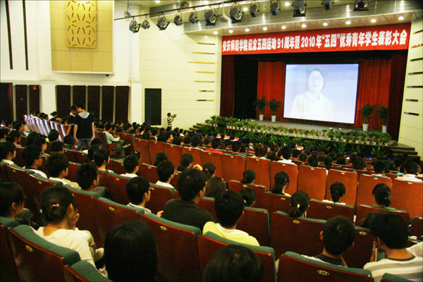 5月4日下午,安庆师范学院龙山校区音乐厅团歌嘹亮、青春激扬,永利官网纪念五四运动91周年暨“五四”优秀青年表彰大会在这里隆重举行。校党委书记何小祥,党委副书记、院长朱士群,党委委员、副院长时新中,党委委员、副院长王海燕,党委副书记、纪委书记殷红,党委委员、副院长闵永新,党委委员、办公室主任刘友忠等校党政领导出席了大会。校党委宣传部、教务处、科技处、学生处等有关职能部门主要负责人,各院系分管学生工作负责人,团委会全体委员及学生代表共400多人参加了会议,在这个青春的节日里,共忆辉煌,共勉学子。