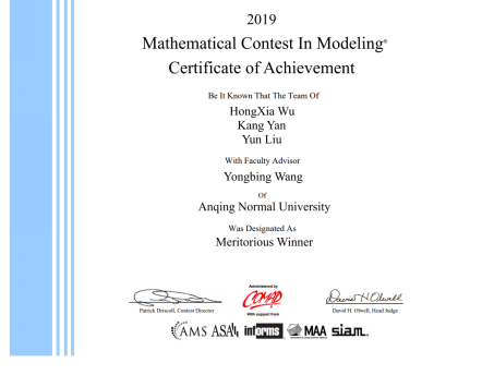 美国大学生数学建模竞赛(MCM/ICM)由美国数学及其应用联合会主办,是唯一的国际性数学建模竞赛,国际认可度高,享有数学建模“奥林匹克”之称。该竞赛历时4天,要求参赛者(3人一组)在4天时间内对赛题展开分析,建立数学模型,编程求解,最终以英文论文形式提交研究结果,这对参赛者是一个很大的挑战,同时也为学生提供了一个国际交流、展示自我的舞台。(数学与计算科学学院)