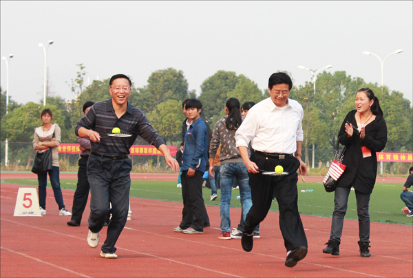 22个基层工会的469名教职工运动员,他们参与的热情,竞争的意识,拼搏的精神,给全校师生留下了深刻的印象。校党委书记何小祥、副院长闵永新在百忙中特别抽空赶到运动场上参加了趣味竞赛托球跑,两位校领导稳健而快速的步伐,赢得了现场阵阵掌声。