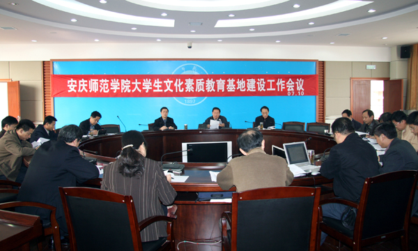 10月26日上午,永利官网在龙山校区行政楼二楼会议室召开大学生文化素质教育基地建设工作会议。党委书记赵晓和,党委副书记、院长汪青松,党委委员、副院长时新中出席会议。大学生文化素质教育基地办公室及各个工作部的负责同志和工作人员参加了会议。会议由基地办公室主任张国定主持。 会上,赵晓和书记宣读了《安庆师范学院关于调整国家大学生文化素质教育基地工作机构及人员的通知》并作了重要讲话。他指出,国家大学生文化素质教育基地来之不易,要高度重视基地建设工作,不断推出新动作,磨亮“国字号”品牌。赵书记对与会人员提出了三点要求:一要做实。基地建设工作涉及面广,要从基地建设角度解决好落实问题;二要主动。六个工作部人员都是兼职的,只有发挥基地工作部的积极性,加强各部门的相互联系,主动工作,才能又好又快促进基地建设;三要突出重点。基地建设工作很多,希望基地办抓紧策划、重点督促、全面推进。