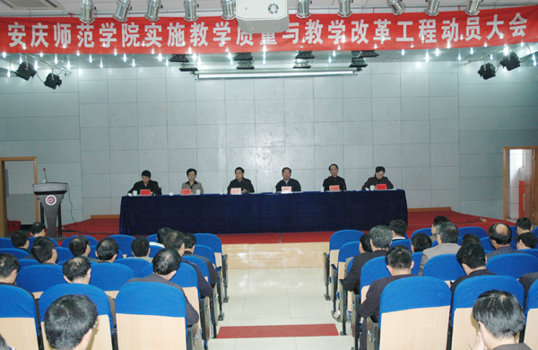 10月26日下午,安庆师范学院教学质量与教学改革工程动员大会在菱湖校区图书馆学术报告厅召开。党委书记赵晓和,党委副书记、院长汪青松,党委委员、副院长时新中、王海燕,党委委员、纪委书记殷红,副院长张群出席会议。会议由副院长时新中主持。