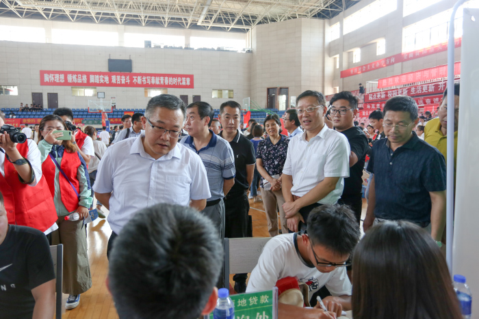 为更好地服务新生和家长,在迎新工作领导小组的统一部署下,各职能部门、各院系紧密配合、协调运行,各司其职,确保新生入学报到工作安全、有序、文明开展。校团委、学生会及各学院组织青年志愿者主动为新生带路,帮助新生办理报到手续,为新生搬运行李,给新生讲解各个注意事项及学校的基本情况,为学生解疑释惑,提供帮助。在校体育馆、在学生公寓区,新生报到的办理安全有序、高效流畅。面对热情的接待和周到的服务,许多新生和家长的脸上洋溢着满意而又欣慰的笑容。