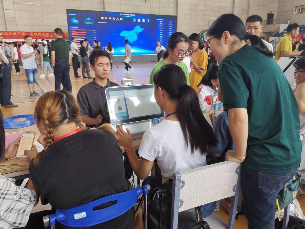 为提高迎新工作效率,今年学校启用了“智慧迎新”系统,大大节约了新生办理入学手续的时间。在迎新现场,新生们只需要将身份证置于指定位置,机器就会启动人脸识别摄像头,自动采集脸部信息,准确快速地识别新生的身份,并且能够自动显示新生的个人信息,包括姓名、学号、专业、宿舍、缴费情况等等。体育馆内报到点的大屏实时更新着报到人数,拍照墙前也挤满了新生及家长合影留念,引入智慧迎新之后,新生的照片会通过体育馆门前的大屏幕滚动播放,新生可以在迎新系统内下载照片。值得一提的是,通过迎新系统大数据筛选,9月7日当天有13位新生过生日,他们获得了学校赠送的礼物,校领导还亲切地慰问了他们,祝福他们生日快乐,努力学习,早日成长成才。