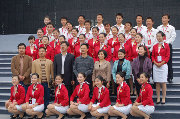 与本次艺术节其他的志愿者不同的是,这35名志愿者的主要工作是接待中央及省级领导、商界文艺界人士以及外国来宾,在艺术节期间,他们将与领导随行,沿途为领导解说安庆历史、文化、旅游资源等知识。从10月14号到28号,这35个志愿者进行了艰苦的训练。团市委联络部部长黄璟和专门从市区请来的礼仪老师陈洁霞每天晚上给他们授课。他们的训练是相当严格的,从晚上7点到近11点,他们都在坚持训练,整整四个小时,中途没有休息时间,并且要一直面带微笑,保持礼仪坐姿。每一天每一个人都要脱稿上去,面带微笑,流利地向其他人介绍安庆各方面的情况。老师要求他们每一天都要有所进步,稍有做的不好的地方,老师们都会毫不留情的批评。这35个志愿者承受着很大的压力,来自08国贸(2)班的杨冰是队长,老师对她的要求更严。她在接受采访时说:“我们白天要上课,晚上还要培训。每天都是挤时间背,挤时间练习。老师要我们做到比安庆本地人还要了解安庆,发了厚厚一叠材料给我们看,我已经好长时间没睡过好觉了。”此次活动还选了60名男生作为伴舞,对他们来说,能睡个好觉已经是一件很奢侈的事情了。他们心里清楚肩上担子的分量,他们知道这次志愿服务不仅仅代表个人,还代表安庆师范学院的学生,更是610多万安庆市民的代表。所以他们坚持,坚持,再坚持。一遍,两遍,三遍,反反复复,不断练习。“