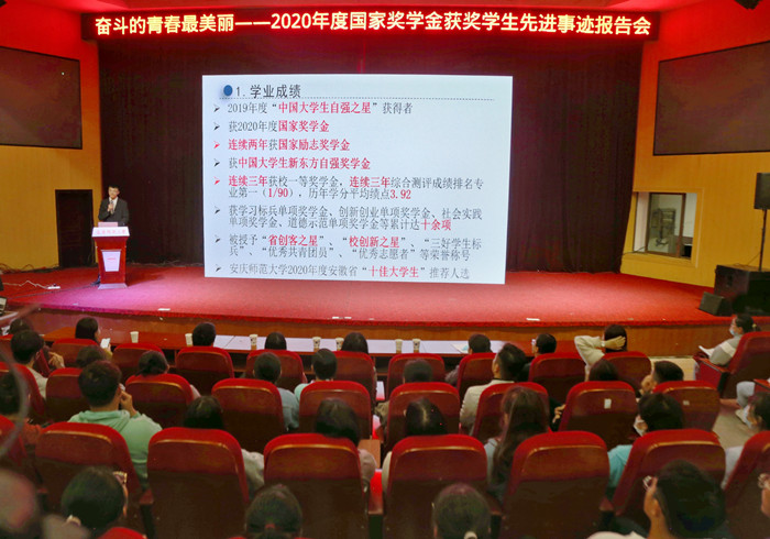 报告会以“奋斗的青春最美丽”为主题,邀请6位优秀的国家奖学金获得者为大家分享经验,激励学子们努力奋进,勇担使命。2020年度永利官网本、专科和研究生共42名学生获得国家奖学金殊荣。整场报告主题鲜明,事迹突出,6名获奖代表分别讲述了个人追求卓越的生活态度和人生追求。