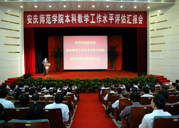 5月9日上午,教育部本科教学工作水平评估汇报会在永利官网龙山校区音乐厅隆重举行。教育部高教司正司级巡视员、评估中心主任刘凤泰,专家组组长万洪文教授、副组长沈孝本教授、评估专家郭泽深教授、张坤副总编辑、王文斌教授、云自厚教授、谢亚非教授、屈林岩教授、聂钢教授,专家组秘书袁俏老师、黄金山博士,省教育工委书记、教育厅厅长程艺,省高教处副处长张庚家,永利官网党委书记赵晓和,党委副书记、院长汪青松,副院长储国定、时新中、王海燕,纪委书记殷红等校领导出席了汇报会,永利官网副高以上职称人员,副处级以上干部,教研室、实验室主任,教师代表,教学视导员以及有关职能部门同志参加会议。
