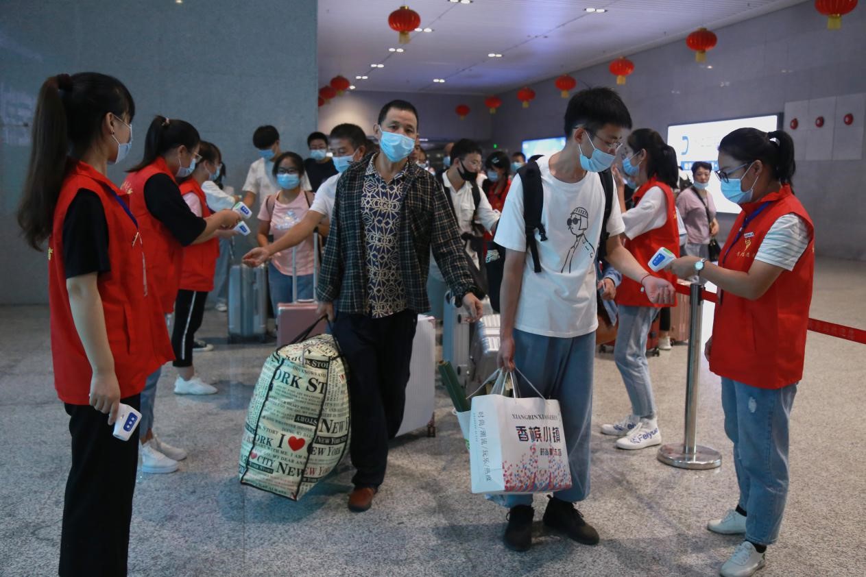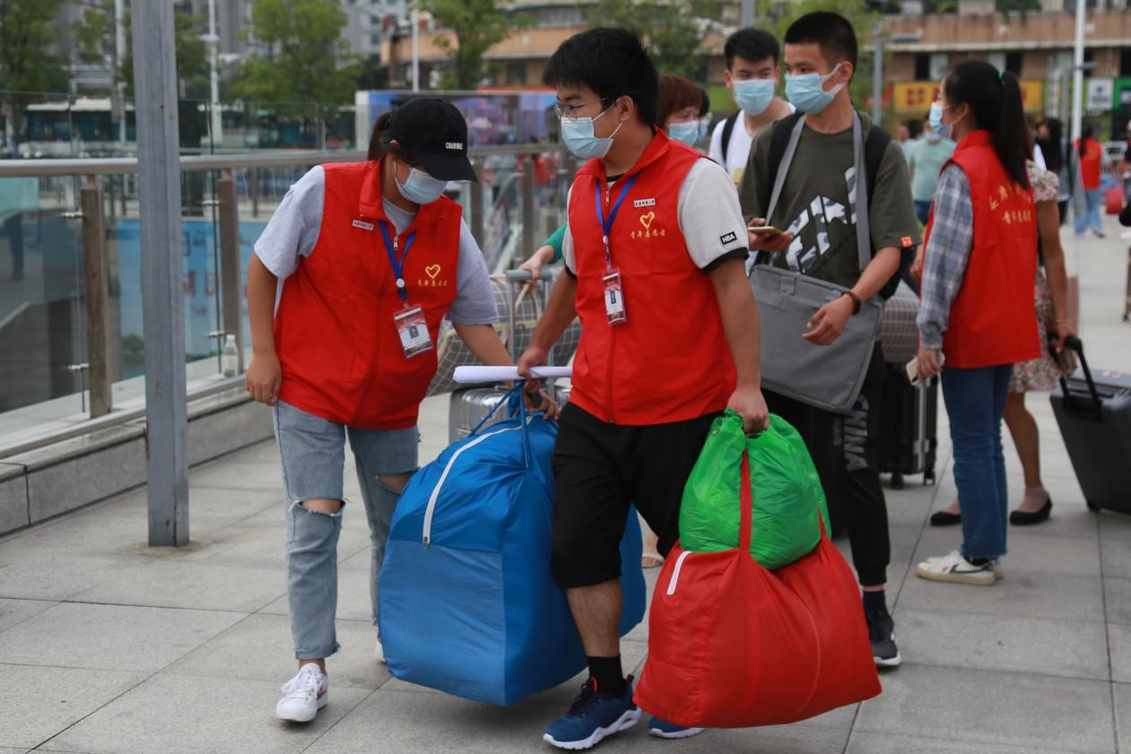 为了让“特别通道”发挥更大的作用,团队在这里分派了10名志愿者进行体温检测,让人流更快速地通过出站口。“为了应对疫情带来的挑战,我们设置了‘特别通道’,招募了比以往更多的志愿者,为的就是让新生感到便利,让家长安心和放心。”校团委老师陈灿说,希望能够帮助学生更好地适应大学生活。(撰稿:学生记者 邓宇 刘敦宝 摄影:学生记者 齐世冉 胡蝶 审核:陈秀)