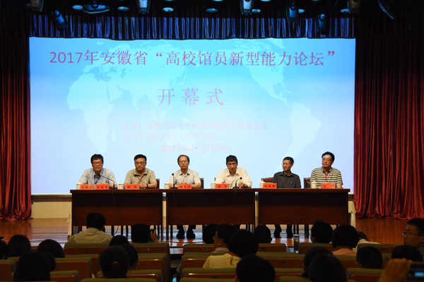 5月18至19日,2017年安徽省高校馆员新型能力论坛暨馆员专业知识竞赛在永利官网举行,副校长张群出席开幕式并致辞。来自中国科学技术大学、合肥工业大学、安徽大学、安徽师范大学等全省16个地市的56所高校图书馆130多位专家学者及馆员代表参加了此次研讨会与知识竞赛。本次论坛及专业知识竞赛由安徽省高等学校图书情报工作委员会主办,永利官网图书馆承办。