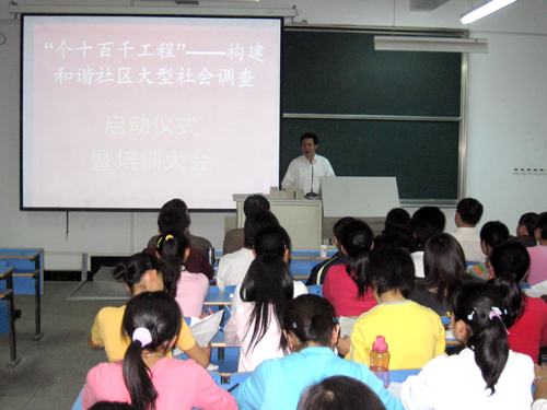 汪院长在启动仪式上,从学校管理者、邓研会顾问、精品课程建设负责人的角度充分肯定了引导大学生投身实践、参与社会调研活动的重要意义。汪院长强调指出:调研活动要坚持以社会主义和谐社会建设思想为指导,注重数据分析,并将定量分析与定性分析相结合,学会解剖案例,形成有质量的调查报告。希望参加调查的同学们要切实深入社区,在老师的带领下有组织地开展好本次调研活动。