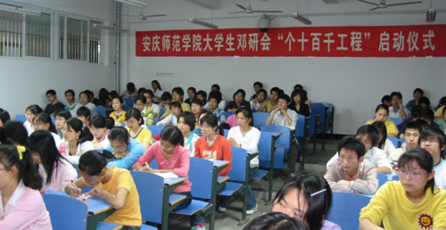 “个十百千”大型社会调查活动是由政法学院团总支与大学生邓小平理论和“三个代表”重要思想研究会共同主办的。“个十百千”,即以构建和谐社区为主题,以安庆市10个社区为调查范围,组织百名大学生,访问1000名社区居民,撰写若干篇调查报告,争取在较为深入地分析中小城市和谐社区建设状况的基础上提出建设性方案。