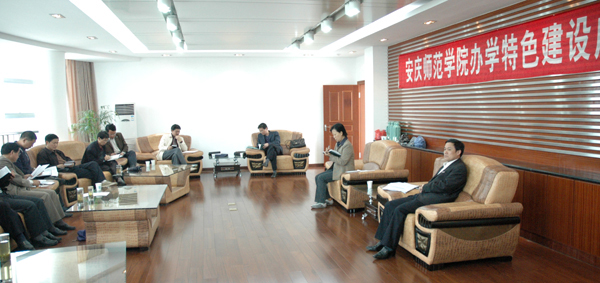 4月29日下午,安庆师范学院办学特色建设座谈会在龙山校区行政办公楼三楼接待室召开。校党委副书记、院长汪青松教授,党委委员、副院长王海燕教授出席会议。永利官网国家大学生文化素质教育基地办公室主任张国定主持会议。