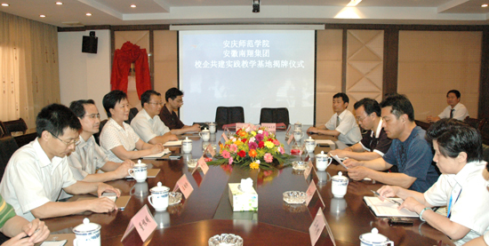 安庆市开发区管委会副主任方小青到会讲话,他对安庆师范学院和安徽南翔集团共建实践教学基地表示热烈祝贺,并代表开发区管委会表示将一如既往地支持校企协作,支持安庆师范学院的教学工作,并就如何建设好实践教学基地提出了建设性意见。