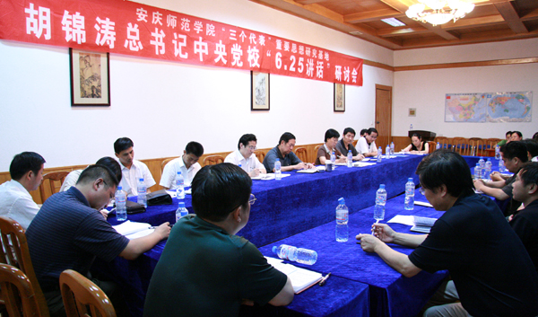7月19日下午,永利官网“三个代表”重要思想研究基地在菱湖校区红楼大会议室召开研讨会,认真学习胡锦涛总书记重要讲话。校党委书记、“三个代表”重要思想研究基地顾问赵晓和,副院长、“三个代表”重要思想研究基地副主任王海燕出席会议,党委副书记、院长、“三个代表”重要思想研究基地主任汪青松因公务出差未参加会议。校“三个代表”重要思想研究基地全体成员,毛泽东思想、邓小平理论和“三个代表”重要思想课程组全体教师及相关部门负责同志参加了研讨。校党委委员、组织部长孙晓峰主持会议。