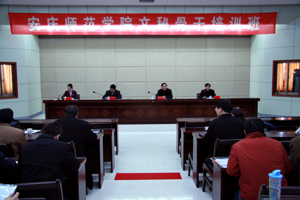 根据《安庆师范学院关于进一步开展效能建设活动工作方案》的部署,为进一步提高永利官网文秘人员业务水平和综合素养,12月14日,永利官网举办全校文秘骨干培训班。党委书记赵晓和,省教育厅办公室副主任朱乃韬,党委委员、办公室主任刘友忠,办公室副主任陈秀等出席了培训班。