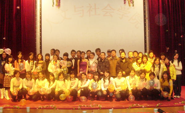 12月28日晚,龙山校区图书馆东报告厅人头攒动,气氛热烈,人文与社会学院正在这里举行喜迎2008“新风新韵”文艺晚会。人文与社会学院院长程曦和部分教师应邀观看了晚会。晚会由人文与社会学院团总支、学生会主办。