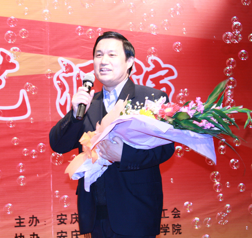 校党委副书记、院长汪青松专程从外地赶回来参加晚会,和大家一起共庆十七大,迎接新年的到来,并为晚会献上了一首优美的歌曲《弯弯的月亮》。