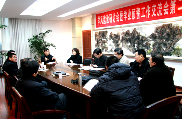 时新中副院长在会上发表了重要讲话。他认为,从总体上看,永利官网学风建设认识是到位的,措施是得力的,效果也是明显的。学校学习风气浓厚,学生综合素质不断提高,学生创新能力和实践水平显著提升,学生违纪率得到明显抑制,毕业生文明离校。他指出,我们在看到成绩的同时,也要看到不足,要多思考、多研究,多做对学生有利有用的事,认真做好职业生涯规划大赛、创业设计大赛、挑战杯等能够培养学生职业能力和创新素质的赛事活动。他强调,学风建设是一项整体要求,必须渗透在学校工作的每一个环节,开展学风建设和学业预警,一要严,要严格管理,严格教育;二要爱,以激励为主,对学生充满爱心,全心全意地爱学生。在具体工作中,应该将学风建设的要求进行细化,落实为可以操作的工作方案,分年级、分阶段展开,体现专业特色和个性要求。各院系、各部门要转变工作思路,落实管理中心下移,进行创造性工作。