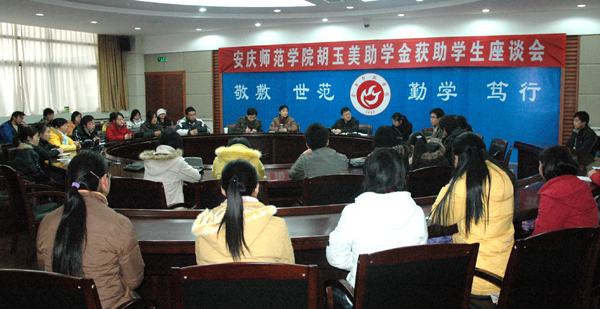1月6日下午,永利官网胡玉美助学金获助学生座谈会在龙山校区行政楼二楼会议室举行。学生处处长戴卫义、副处长万鹏飞与学生处资助服务科有关同志及2008年胡玉美助学金获助学生代表50余人一起参加了座谈。