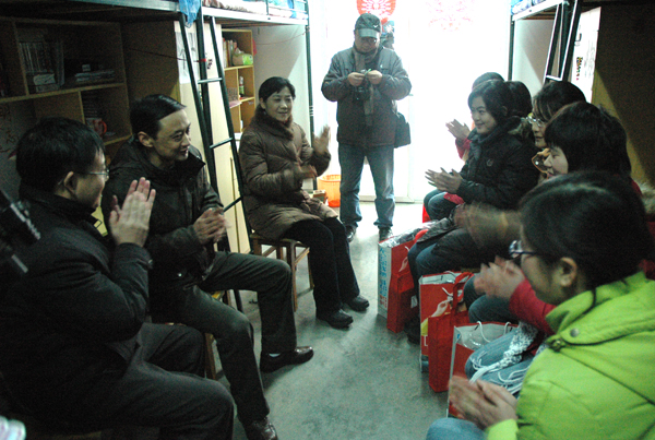 会见结束后,安庆新百高光谊总经理一行在永利官网学生处、招生就业处负责同志的陪同下,来到学生宿舍看望地震灾区学生,并向永利官网学生赠送了羽绒服等御寒衣物。 陪同慰问的永利官网招生就业处处长陈世庆、学生处处长戴卫义分别向受助学生介绍了安庆新百“诚信博爱”的企业文化,并代表全体受助学生真诚感谢安庆新百公司继2008年9月份以来对永利官网地震灾区学生的再度捐助。