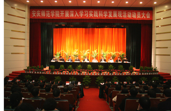 赵书记指出,永利官网党委高度重视本次学习实践活动。在动员大会召开之前,党委多次专题研究学习实践活动的实施方案,确定了本次活动以“着力内涵建设,强化办学特色,推进科学发展”为主题,并决定把学习实践活动与贯彻落实党的十七大精神结合起来,与服务安徽建设高等教育强省的目标结合起来,与完成永利官网第四次党代会和“十一五”规划确立的奋斗目标结合起来,与总结学校近10年来的发展经验和教训结合起来,与2009年学校的重点工作结合起来,与学科建设、质量工程、人才培养、服务地方等工作结合起来,明确办学思路、提高办学质量、完善体制机制、建设和谐校园,努力把科学发展观贯彻落实到学校的教学、科研、管理、服务经济社会发展等各个方面,推进学校各项事业又好又快发展。