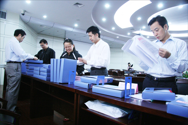 汇报会后,检查组查阅了永利官网文明创建方面的相关材料。摆放在会场北边四张长桌上的5大类37盒创建文明单位材料引起了检查组的浓厚兴趣,陈啸副院长、李忠部长、张英明主任一盒一盒地进行了认真的查看,同时还就相关问题进行了询问。专家们认为,“你们的材料很多,很充实,也很真”。当看到永利官网文明创建组织机构和职责分工的材料时,专家们认为,“从材料里可以看出文明创建工作常态化,创建过程清晰,从2003年到现在,每年的材料都有,有连续性,这是长期积累的结果”。